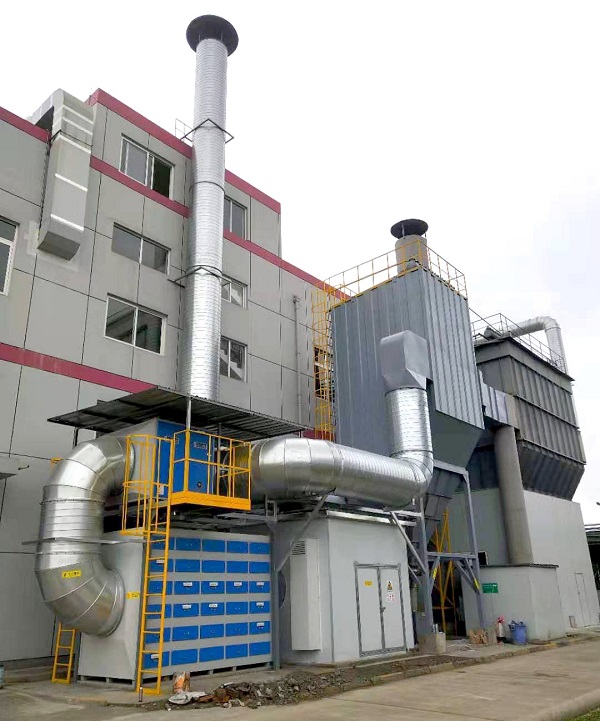 2020年为中蓝晨光新津分公司硅橡胶车间内数台捏合机、投料机等设备设计、制作、安装了一套粉尘及VOCs废气处理系统,系统处理风量53000m3/h,处理设备选用MC型脉冲袋式除尘器、UV光氧催化净化装置、活性炭吸附器,联接管道选用镀锌螺旋风管。