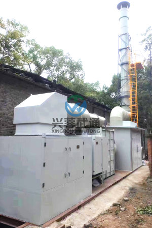 2023年为广元某机械厂设计制作并安装了一套废气处理系统,系统由干式漆雾处理柜+UV光氧催化净化器+活性炭箱,处理风量50000m3/h
