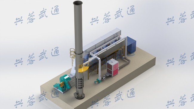 2.催化燃烧室采用陶瓷蜂窝体的贵金属催化剂,阻力小,活性高,可维持自燃。