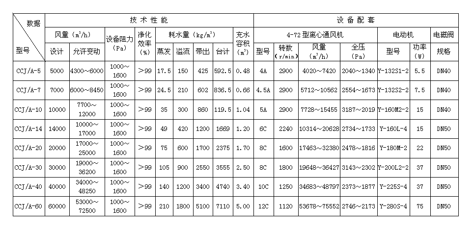 (五)CCJ/A型除尘机组技术性能设备配套表