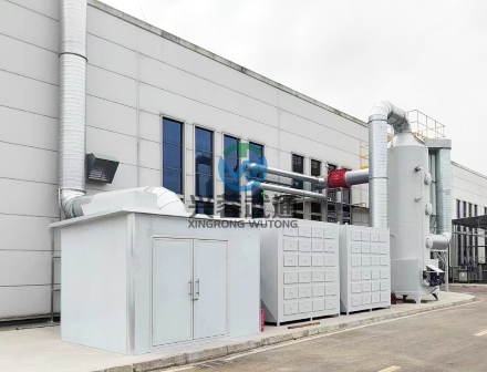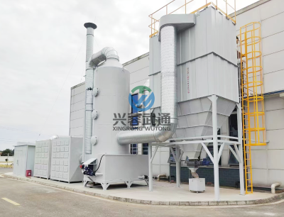 2023年初为眉山某企业设计制作安装一套粉尘废气处理系统,系统风量19000m3/h,采用除尘器+喷淋塔+二级活性炭箱处理方式