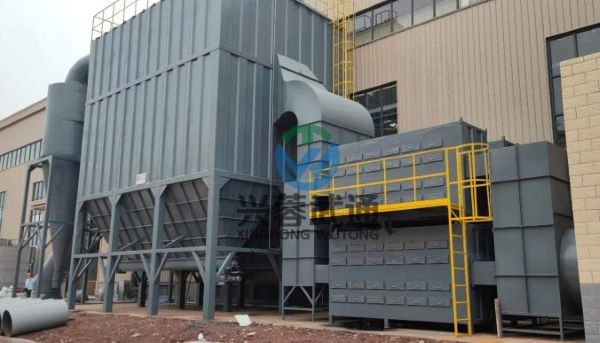 系统由旋风除尘器+气箱式脉冲除尘器+活性炭箱组成,处理风量113600m3/h