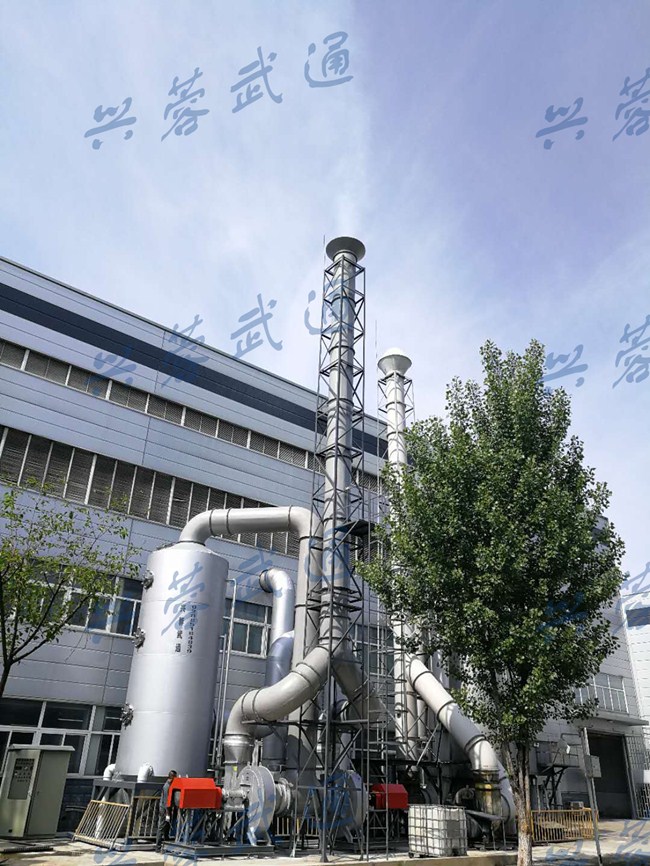 填料喷淋吸收塔,采用立式圆筒设计,由填料、喷淋装置、除雾装置、喷淋液循环泵、吸收塔组成。填料填料等材料为不锈钢材料,耐腐蚀性能好。吸收塔内部喷淋系统是由分配主管、支管和喷嘴组成的网状系统,管和喷嘴等材料为不锈钢316L,耐腐蚀性能好,配有不锈钢316L循环泵。喷淋层上安装高压螺旋喷嘴,该喷嘴具喷洒角度大、喷雾均匀、不易堵塞等优点。喷淋系统能使喷淋液在吸收塔内均匀分布,流经每个喷淋层的流量相等。喷淋塔将由循环泵驱动并由喷淋管上的喷头喷出的液体转变成附着在填料上的水膜,从而增强气与液的接触面积,使喷淋液与废气充分接触,喷淋液滴作为捕尘体,在惯性、截流、扩散等作用下将粉尘和有害气体捕集,达到除尘净化的目的。